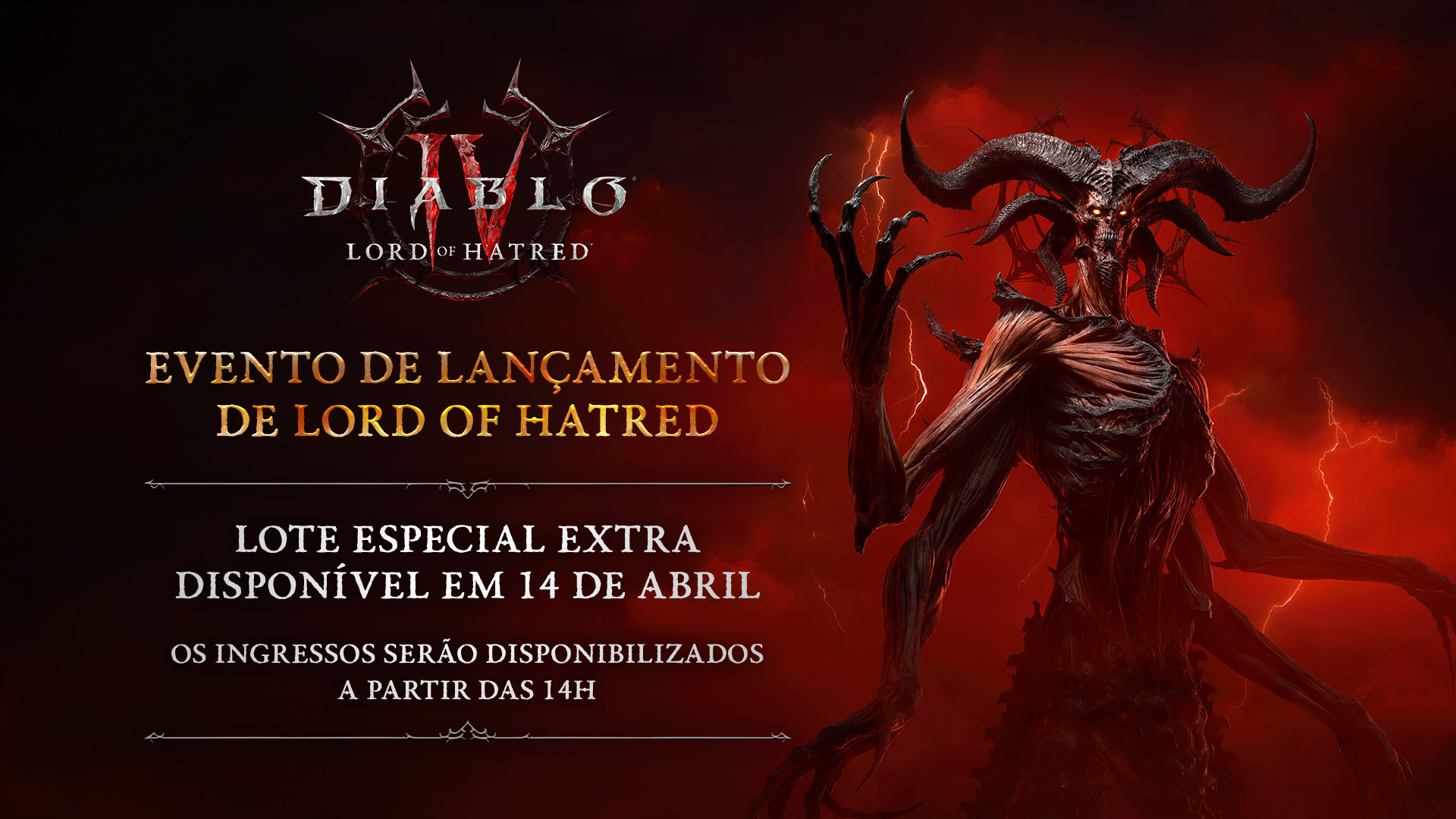 Os Viajantes pediram e o Senhor do Ódio ouviu suas preces. Prepare-se para o acerto de contas! Um lote especial de ingressos gratuitos para o evento de lançamento de Diablo IV: Lord of Hatred será disponibilizado hoje, 14 de abril, a partir das 14h, no Sympla, em quantidade limitada.