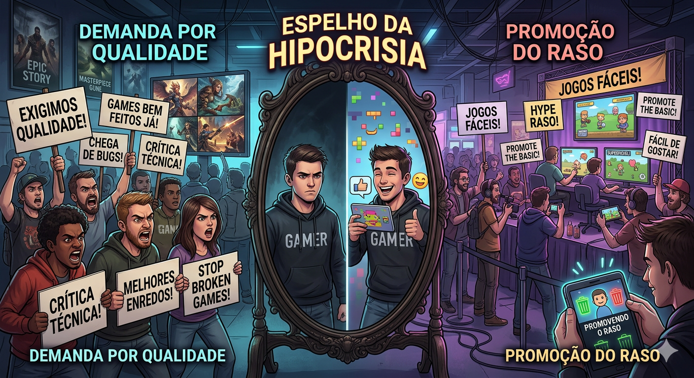 Opinião: Faça o que eu digo. Não o que faço! A comunidade gamer que tanto exige profissionalismo dos criadores de conteúdo dá show de arrogância na internet também, gerando assuntos virais cansativos e promovendo justamente aquilo que acham medíocre.