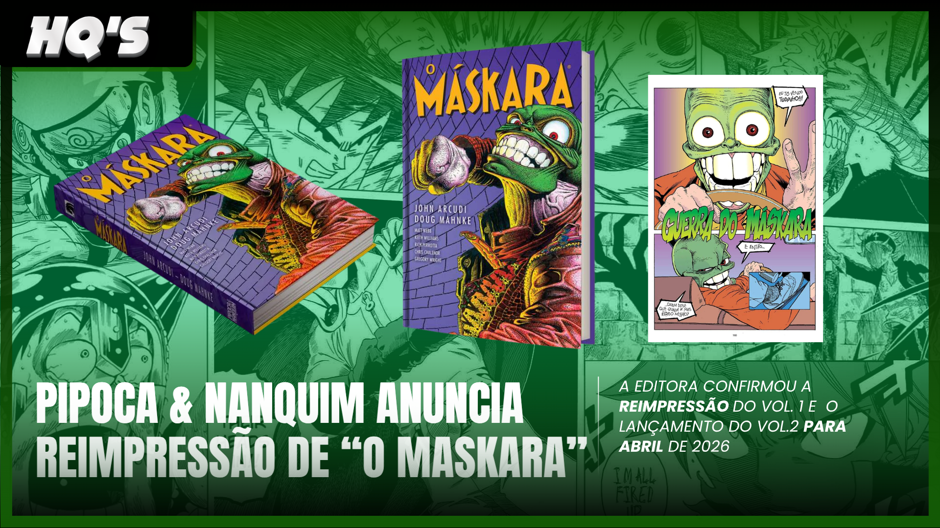 A Editora Pipoca & Nanquim anunciou oficialmente a reimpressão de O Máskara Vol. 1, trazendo uma nova oportunidade para fãs e colecionadores adquirirem a obra em uma edição de luxo. A pré-venda já está aberta, com preço sugerido de R$ 149,90, e lançamento previsto para 30 de abril de 2026.