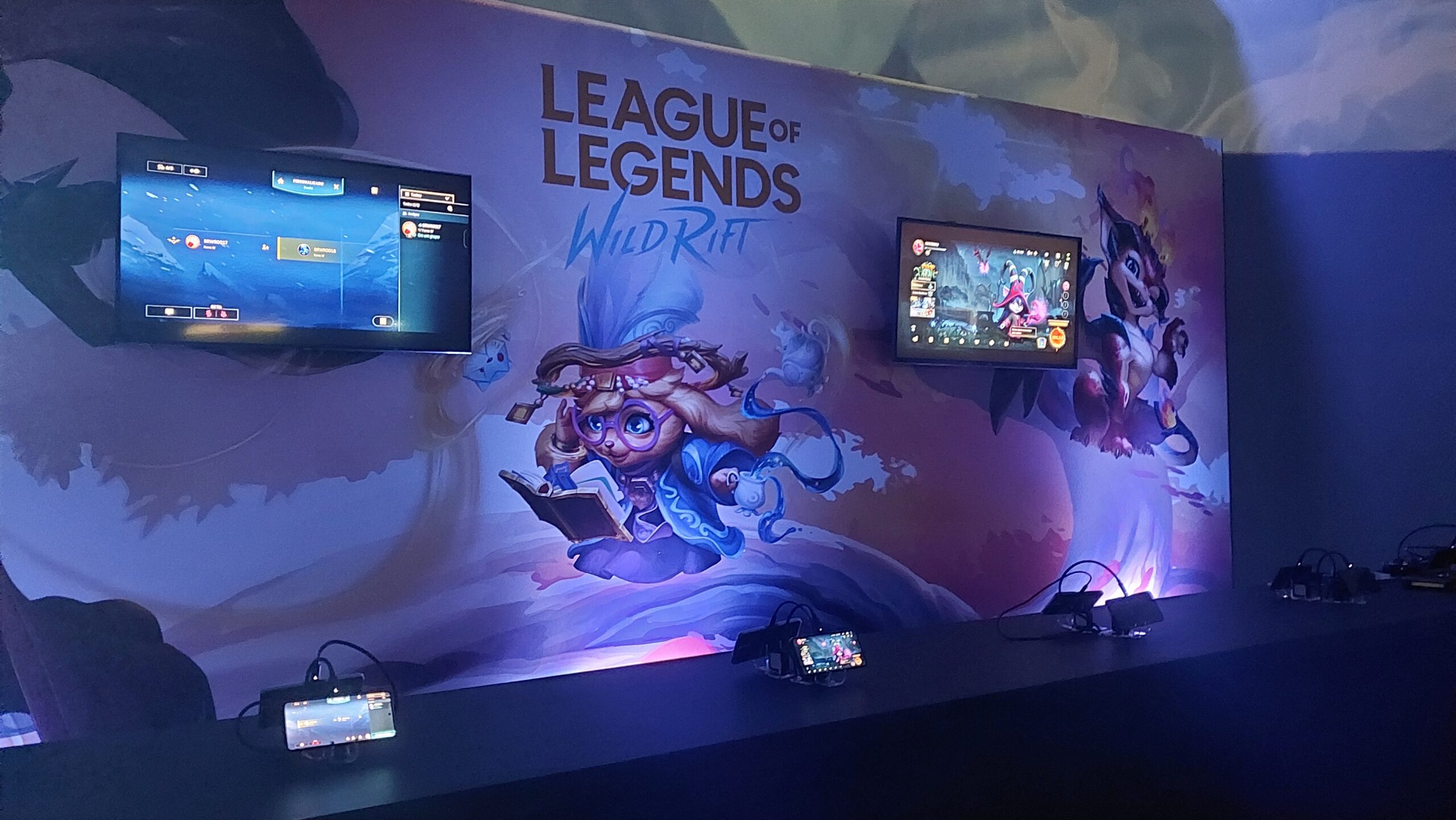 A gameplay também não ficou de fora, com um espaço dedicado para o público se divertir, contando com um estande disponível repleto de celulares para LOL Wild Rift e Teamfight Tactics, além de máquinas de fliperama dedicadas para uma rinha amigável em 2XKO.
