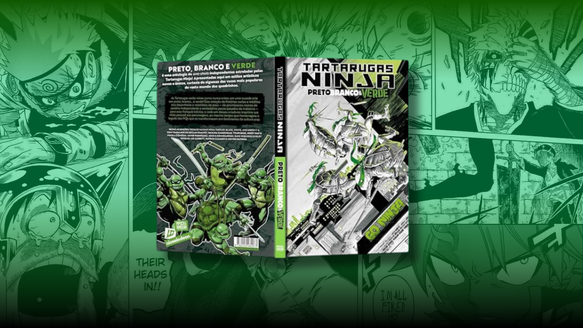 A minissérie Teenage Mutant Ninja Turtles: Black, White & Green, publicada pela IDW Publishing e aqui no Brasil publicada pela editora Pipoca&Nanquim, aposta em resgatar as origens mais cruas das Tartarugas Ninja, agora com um diferencial visual marcante: o uso limitado das cores preto, branco e verde. Com um volume único que reúne as quatro edições independentes, a proposta é reunir diferentes artistas e roteiristas para reinterpretar os personagens em histórias curtas, acessíveis e criativas.